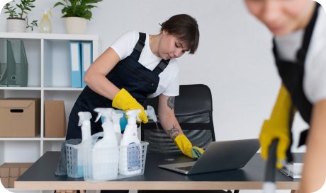 Daily or weekly cleaning of workspaces, including desks, floors, and common areas